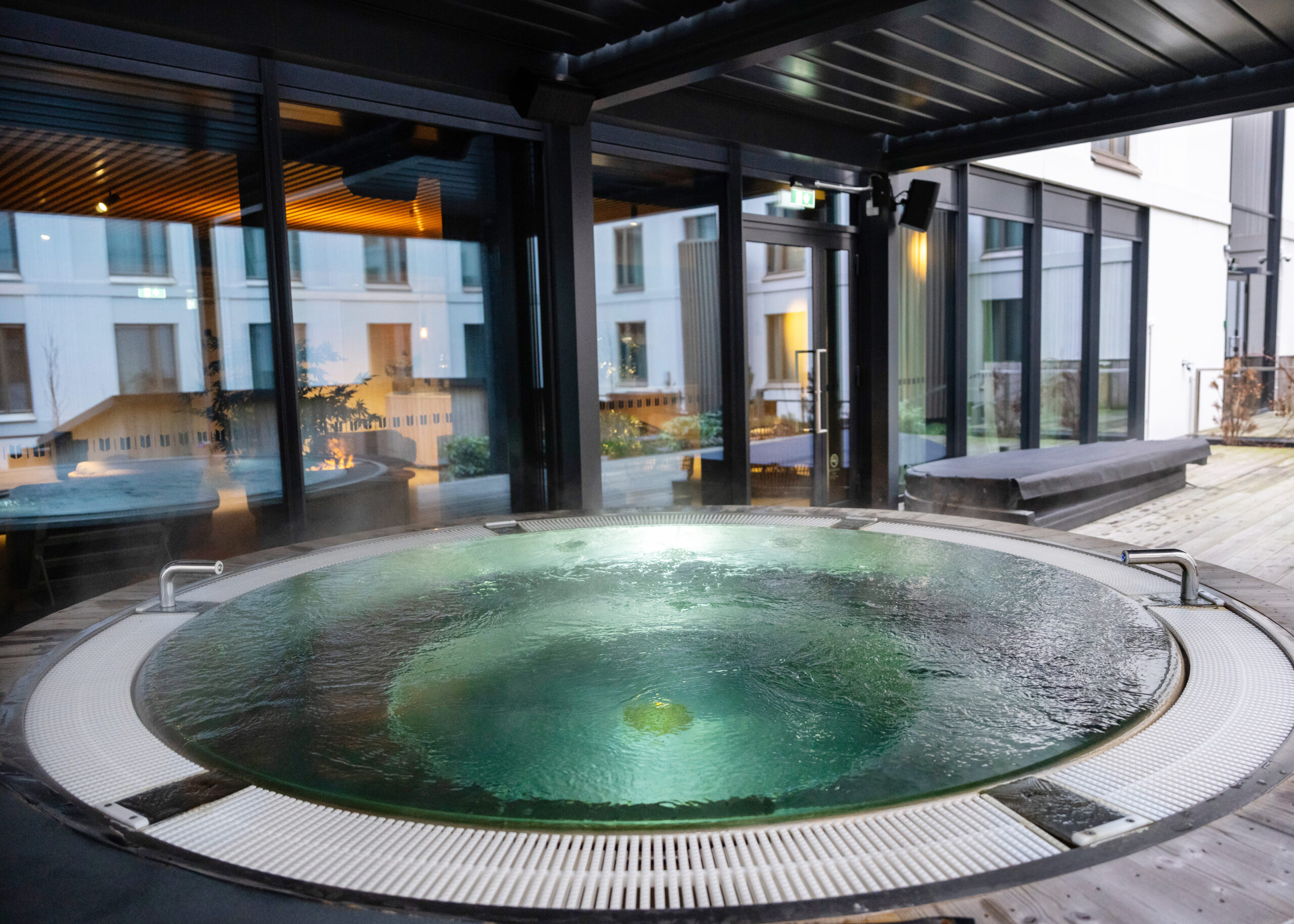 Sisäpihan lämmin uima-allas täydentää Clarionin palvelukokonaisuutta: hotellivieraat voivat nauttia talvisesta ulkoilmasta tähtitaivaan alla, samalla kun lämpimän veden rauhoittava ympäristö lisää elämyksellisyyttä.